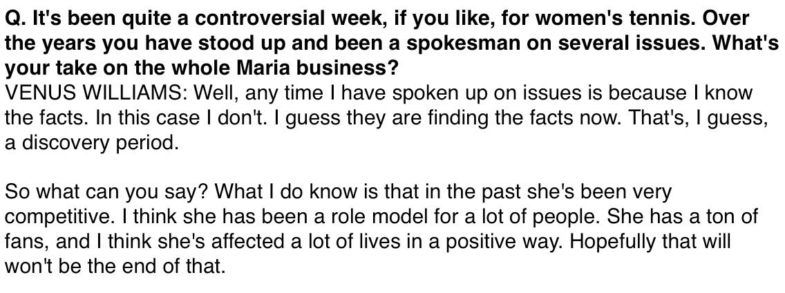 you’ll appreciate venus response. i’ve always liked venus; she’ll be sorely missed when she retires